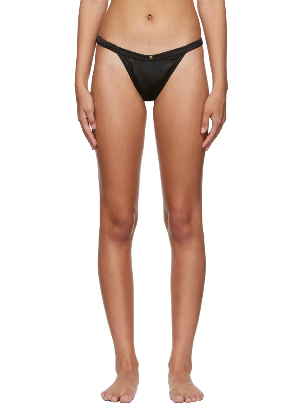 Stretch silk satin thong. · Logo hardware at front · Partial jersey lining Supplier color: Black Body: 94% silk, 6% elastane. Lining: 82% polyamide, 18% elastane. Made in Italy 222653F081008