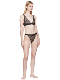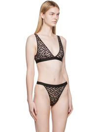 Semi-sheer stretch nylon tulle bra. · Scalloped edges and logo pattern knit throughout · Hook-eye fastening at logo-woven elasticized trim Supplier color: Black Body: 93% nylon, 7% elastane. Trim: 78% polyester, 11% elastane. Made in Italy 222653F073030