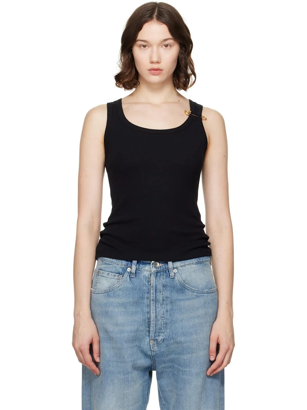 Black Safety Pin Ribbed Tank Top