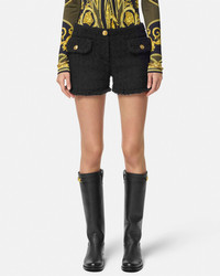 DETAILS Classic shorts in heritage wool and mohair blend boucl tweed with accent Medusa buttons and frayed trims - Medusa hardware - Front button and zip closure - Front flap pockets - Side pockets - Outer composition: 77% Pure virgin wool, 14% Mohair, 9% Nylon - Lining 1: 58% Cupro, 42% Viscose - Lining 2: 98% Pure virgin wool, 2% Elastane Item: 1015377-1A10096_1B000 SIZE & FIT - The model is 5'10" tall and wears size 38 IT