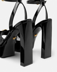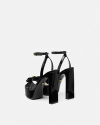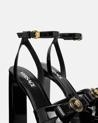 DETAILS These platform sandals are crafted from smooth leather and are set on slim highblock heels The upper straps are adorned with the archival Gianni Ribbon bow featuring an enamel Medusa - Medusa hardware - Round open toe - Buckle ankle strap - Slim block heel - Platform - Outer composition: 100% Calf leather - Lining 1: 100% Lambskin - Lining 2: 100% Goat leather - Sole: 100% Calf leather Item: 1017314-D2VE_1B00V SIZE & FIT - The shoe weighs approximately 17.6 oz / 0.5 kg for the model size 39 IT - Heel: 5.5" / 14 cm - Platform: 1.6" / 4 cm - Footbed: regular - Fit is true to size, we recommend taking your normal size