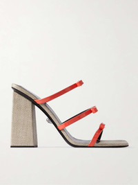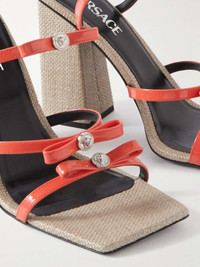 EDITORS'NOTES Versace's sandals are recognizable thanks to the signature ‘Medusa’ hardware accenting each strap. Crafted from leather, they have chic square toes and rest on raffia platform heels. SIZE & FIT - Fits true to size, take your normal size - Italian sizing DETAILS & CARE - Heel measures approximately 95mm/ 4 inches - Coral leather - Slips on
