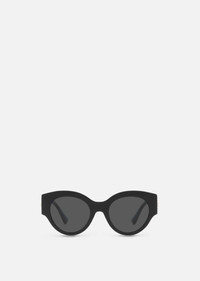 Round acetate sunglasses, accented by a crystal-embellished Medusa emblem at the temples. DETAILS & CARE - Medusa hardware - Crystal embellishments - Frame color: Black - Temple color: Black - Lens color: Dark grey SIZE & FIT - Lens width: 52 mm - Bridge: 22 mm - Temple: 145 mm