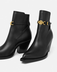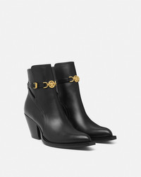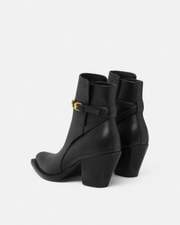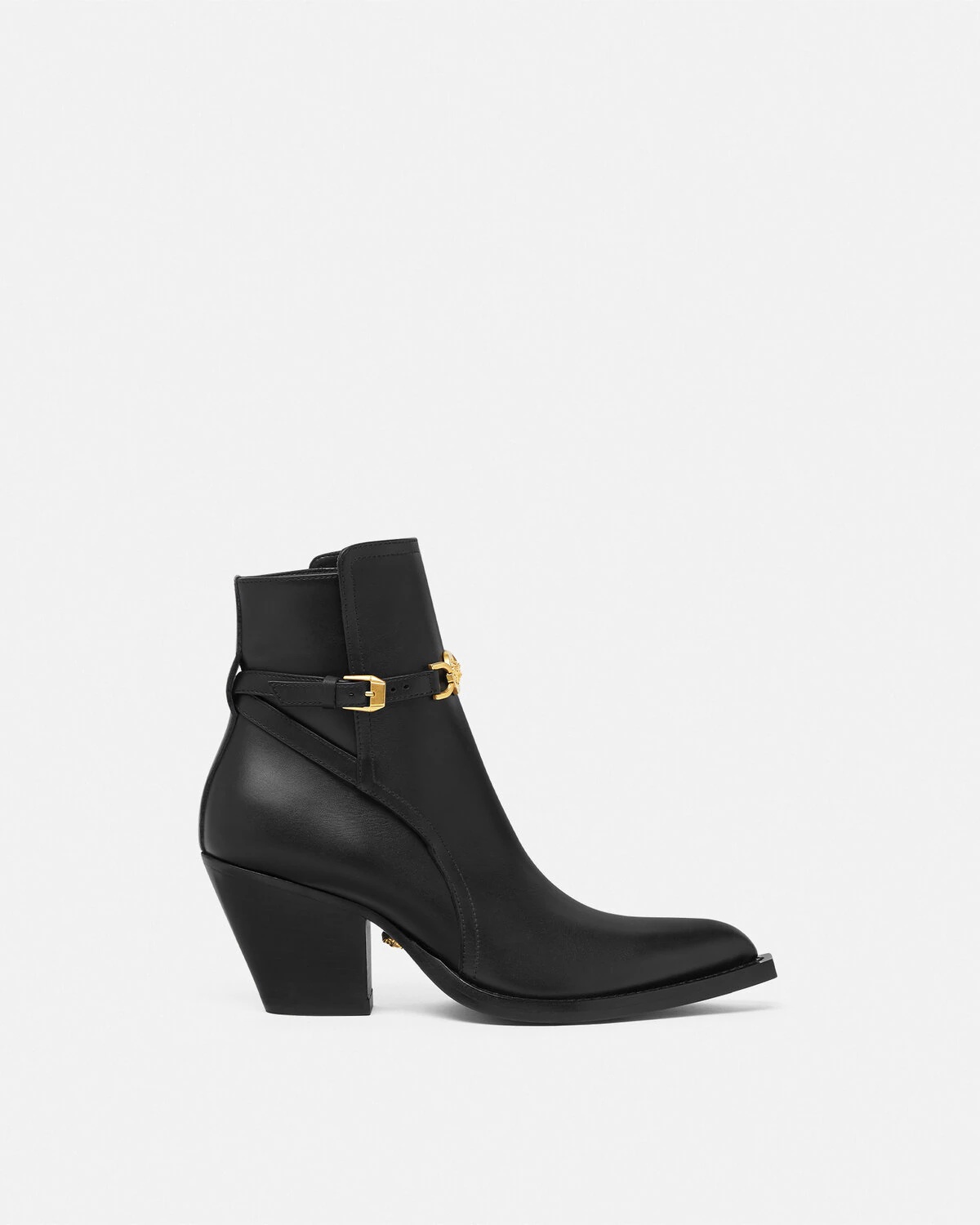 DETAILS These Texanstyle ankle boots have a block slanted heel and are crafted from smooth leather with a Medusa 95 buckle on the ankle strap - Medusa '95 - Pointed toe - Tapered heel - Adjustable ankle strap - Outer composition: 100% Calf leather - Lining 1: 100% Lambskin - Lining 2: 100% Goat leather - Sole: 100% Calf leather Item: 1015913-1A04174_1B00V SIZE & FIT - The shoe weighs approximately 21.2 oz / 0.6 kg for the model size 39 IT - Heel: 2.6" / 6.5 cm - Footbed: regular - Fit is true to size, we recommend taking your normal size