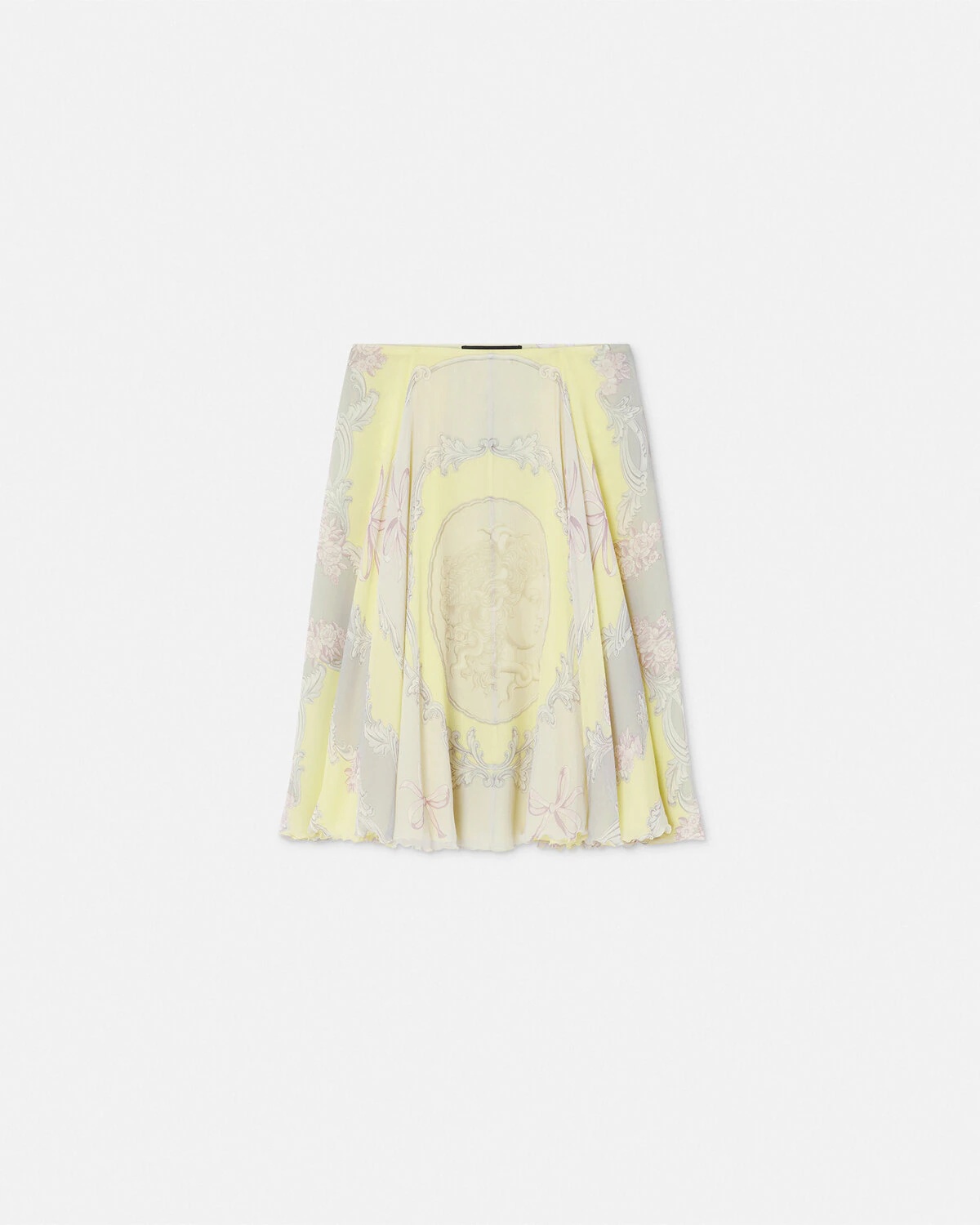 DETAILS This flowing midi skirt is detailed with an allover Medusa Cameo print on fluid silk crpe and features a lightweight slip underneath - Medusa Cameo print - Concealed side zip closure - Outer composition: 100% Silk - Lining: 75% Acetate, 25% Silk Item: 1019800-1A14317_5Y470 SIZE & FIT - The model is 5'10" / 1.79 m tall and wears size 38 IT