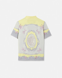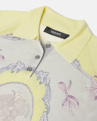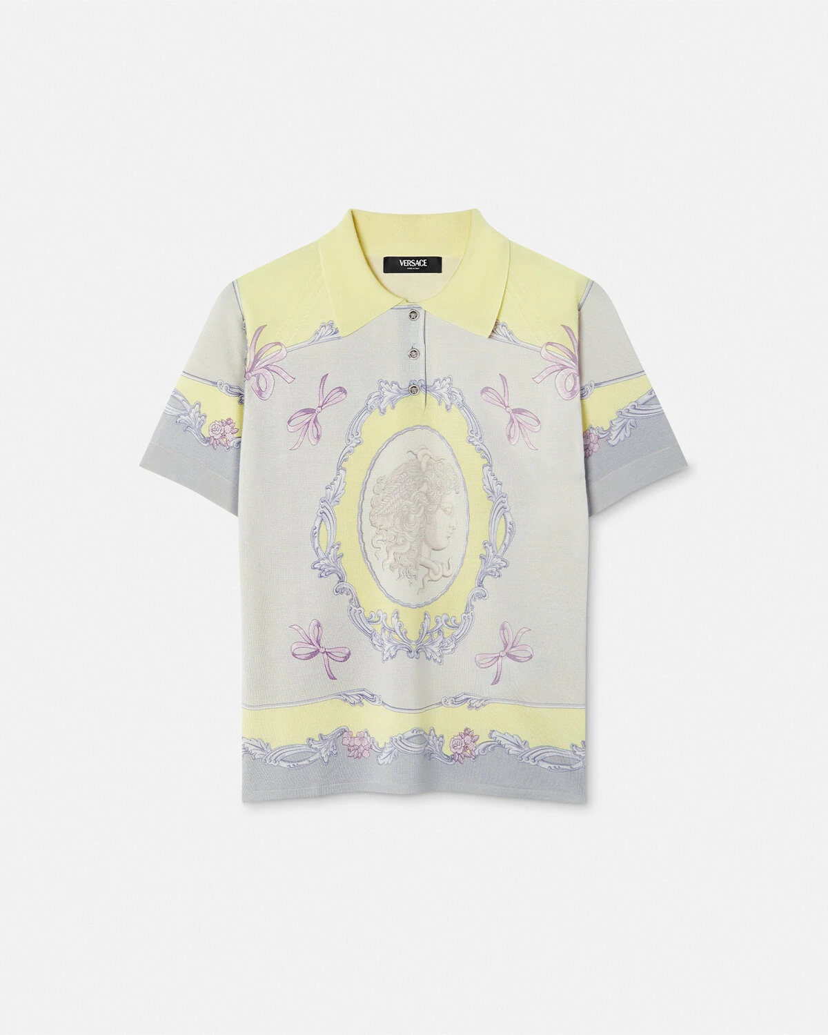 DETAILS This shortsleeved polo shirt is crafted entirely of silk in an oversized fit The design is accented with an allover Medusa Cameo print and Medusa buttons - Medusa Cameo print - Medusa hardware - Short sleeves - Pointed collar - Three-button placket - Outer composition: 100% Silk Item: 1019772-1A14275_5Y470 SIZE & FIT - The model is 5'10" / 1.79 m tall and wears size 38 IT