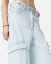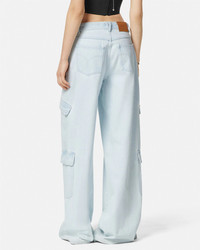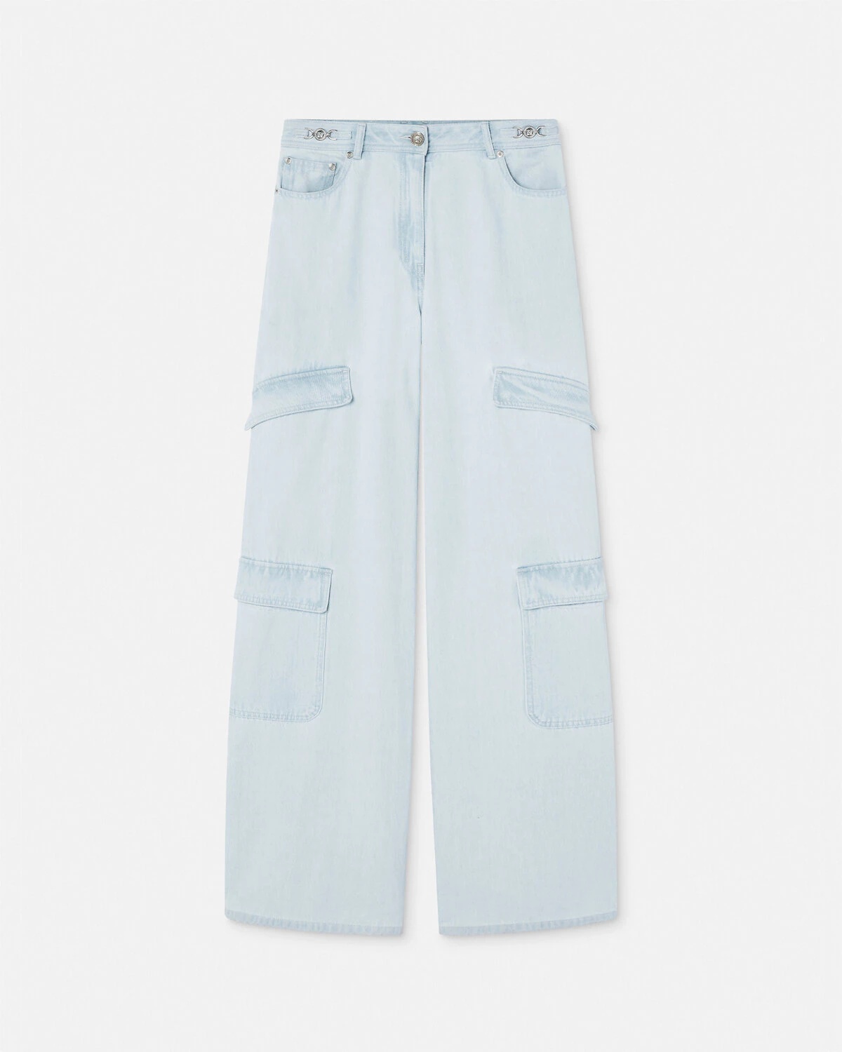 DETAILS These wide-leg jeans are made in a light stonewashed finish with cargo pockets and accent Medusa '95 hardware at the waistband. - Medusa '95 hardware - Belt loops - Front button and zip closure - Five-pocket design - Cargo pockets - Back leather logo patch - Outer composition: 100% Cotton - Lining: 65% Polyester, 35% Cotton - Trim: 100% Calf leather Item: 1014866-1A10425_1D700 SIZE & FIT - The model is 1,79 m tall and wears size 26 - All sizes fit Italian standards