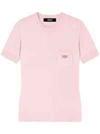 Medusa-plaque knitted top Highlights - Light pink - Wool - Medusa plaque detail - Knitted construction - Crew neck - Short sleeves - Ribbed-knit edge Made in Italy Composition Wool 100% SIZE & FIT Measurement SLEEVE LENGTH 8.66 in(22 cm) LENGTH 23.62 in(60 cm) WAIST 29.92 in(76 cm)