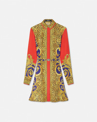 Cheetah Barocco Silk Midi Shirt Dress
