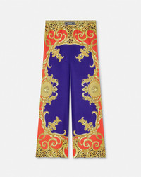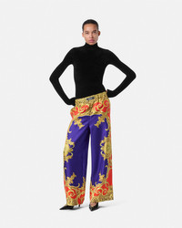DETAILS Pajamastyle silk twill pants featuring an animalier print with Barocco motifs detailed with a jacquard Versace Logo label at the waistband - Cheetah Barocco Rock 'n' Royalty print - Versace Logo label - Elastic waistband - Outer Composition: 100% Silk - Lining: 100% Silk Item: 1020972-1A16367_5UH20 SIZE & FIT - The model is 5'10" / 1.78 m tall and wears size 38 IT