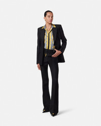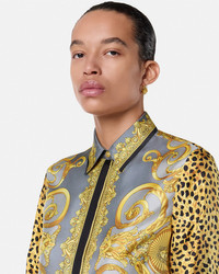 DETAILS This classic longsleeved shirt is made from silk twill and features an animalier print with Barocco motifs and a single accent Medusa button at the front closure - Cheetah Foulard print - Medusa hardware - Long sleeves - Pointed collar - Concealed button closure - Buttoned cuffs - Outer Composition: 100% Silk Item: 1001360-1A16366_5E700 SIZE & FIT - The model is 5'10" / 1.78 m tall and wears size 38 IT