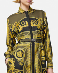DETAILS This longsleeved silk twill shirt dress features a classical La Coupe des Dieux print with references to Greek mythology accented by a Medusa 95 clicclac belt at the waist - La Coupe des Dieux print - Long sleeves - Pointed collar - Concealed button placket - Buttoned cuffs - Side slits - Detachable belt - Outer composition: 100% Silk Item: 1016413-1A11528_5BC60 SIZE & FIT - The model is 5'10" tall and wears size 38 IT