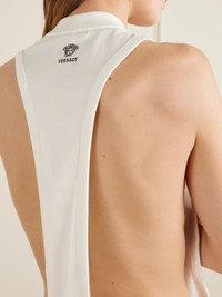 Versace's dress offers a bold take on the classic T-shirt silhouette. Made from cotton-blend jersey, it features a high V-neckline and wide side slits. Take note from the SS26 runway and style yours with a long statement necklace.