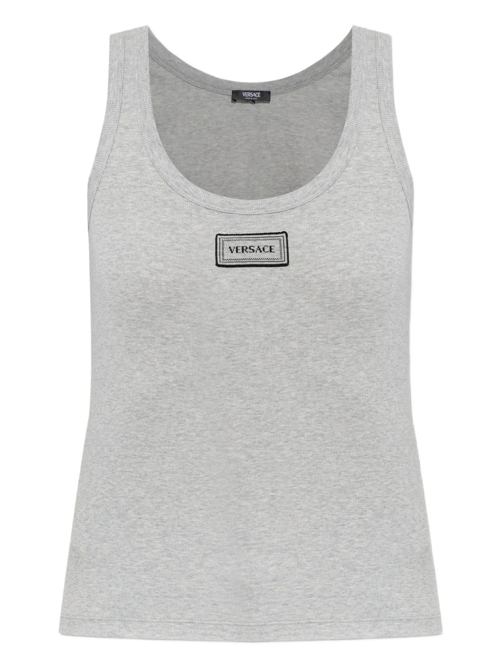 label T-shirt Highlights - Grey - Ribbed knit - Label applique - Round neck - Sleeveless Made in Italy Composition Cotton 93%, Elastane 7% Washing instructions Read Manufacturer Guidelines