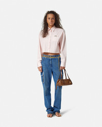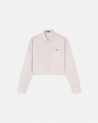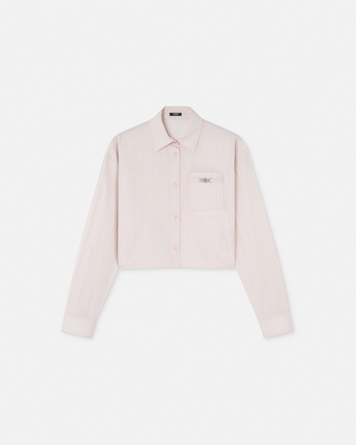 DETAILS This longsleeved shirt has a cropped boxy fit and features an accent Medusa 95 hardware on the chest pocket and a pinstriped chain print - Pinstripe Chain print - Medusa '95 hardware - Medusa hardware - Long sleeves - Long sleeves - Pointed collar - Front button closure - Buttoned cuffs - Outer composition: 100% Cotton Item: 1013765-1A13641_5PC60 SIZE & FIT - The model is 5'10" / 1.79 m tall and wears size 38 IT