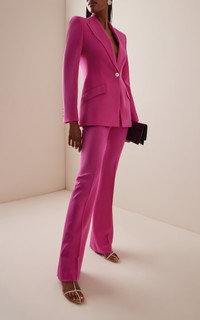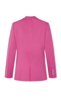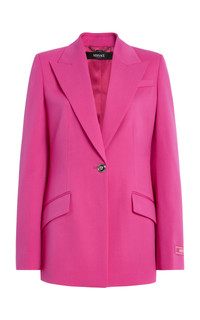 Italian for ‘vacation’, the La Vacanza collection proposes beachwear for the summer season, featuring this season's Underwater Barocco print, signature Safety Pins and more. A single-breasted boxy blazer in responsible stretch-wool gabardine featuring signature Medusa '95 hardware. A jacquard tailoring label details the sleeve. PRODUCT DETAILS - La Vacanza '25 - Button fastening - Composition: 98% virgin wool, 2% elastane; Lining: 100% cupro - Designer color: Dragon Fruit - Dry clean - Made in Italy SIZE & FIT - Designed for a boxy fit
