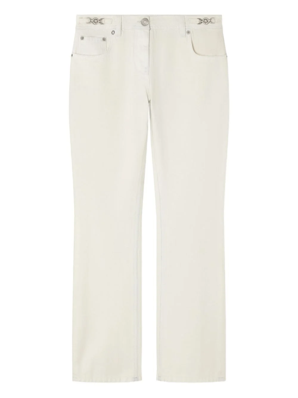 cotton jeans Highlights - White - Concealed fly and button fastening - Belt loops - Classic five pockets - Medusa plaque detail Made in Italy Composition Calf Leather 100%, Cotton 100% Washing instructions Read Manufacturer Guidelines