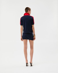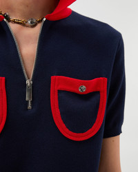 A cotton-knit midi dress with a polo collar and half-zip closure, featuring contrast color-blocked pockets at the chest and a Medusa pin. - Medusa hardware - Short sleeves - Pointed collar - Front half-zip closure - Front pockets - Ribbed trims - Outer composition: 100% Cotton - Trim: 70% Cotton, 27% Polyester, 3% Elastane Size & Fit - The model is 6'2" / 1.89 m tall and wears size 38 IT Item: 1024344-1A17391_1U040