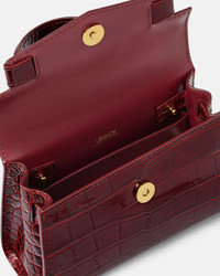 DETAILS A small handbag with belt detail featuring the Medusa '95 hardware, the iconic House code first seen in the 1995 collections. The top handle design is made from croc-effect embossed leather with a magnetic foldover flap and a detachable crossbody shoulder strap. - Medusa '95 hardware - Versace logo embossing - Top handles - Foldover magnetic closure - Two internal slip pockets - Detachable shoulder strap - Metal feet - Outer composition: 100% Calf leather - Lining: 100% Lambskin Item: 1013824-1A08724_DTU_UNICA_1R70V__ SIZE & FIT - L8.3" x W3" x H5.9" - Strap: L39.3"-42.5" - Drop: L3.3" - Approximate weight: 14.1 oz