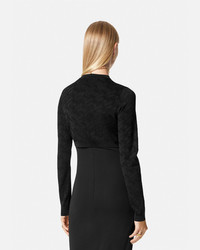 A cropped cardigan featuring a tonal jacquard-knit La Greca pattern, accented by Medusa buttons. DETAILS & CARE - La Greca pattern - Medusa hardware - Crewneck - Ribbed trims - Outer composition: 91% Viscose, 7% Nylon, 2% Elastane SIZE & FIT - The model is 5'7" ft tall and wear size 38 - All sizes fit Italian standards