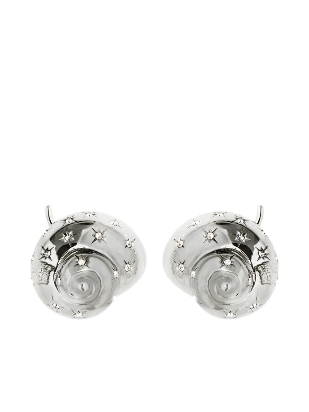 crystal-embellished earrings Highlights - Silver-tone - Lever fastening - Crystal embellishment - Curved corners Made in Italy