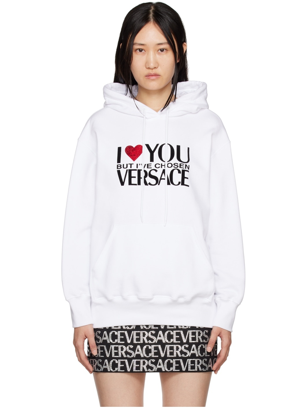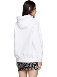 French terry hoodie. · Drawstring at hood · Sequinned and flocked logo graphic at chest · Kangaroo pocket · Rib knit hem and cuffs Supplier color: Optical white 100% cotton.