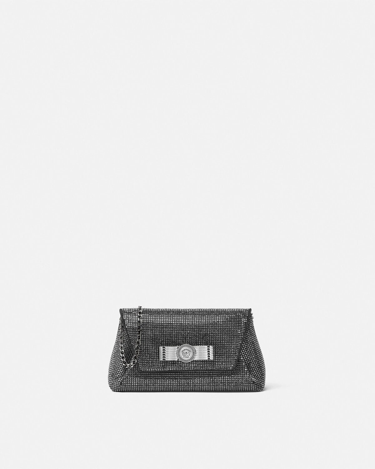 DETAILS Item: - Medusa hardware - Crystal embellishments - Magnetic foldover flap - Detachable chain shoulder strap - Outer composition: 72% Viscose, 28% Silk - Trim: 100% Lambskin Item: 1017025-1A13507_DTU_UNICA_1B00E__ SIZE & FIT - L8.3" x W2.8" x H4.7" / L21 x W7 x H12 cm - Chain shoulder strap: L48" / L122 cm - Shoulder drop: L22.2" / L56.5 cm - Approximate weight: 10.6 oz / 0.3 kg