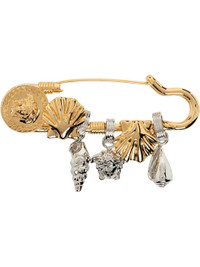 Brooch in gold- and silver-tone. · Graphic and Medusa charms at face · Safety-pin fastening · H0.75" x W3" Part of the La Vacanza collection. Supplier color: Versace gold/Palladium Metal. Made in Italy 252404F021001