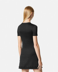 DETAILS A slim fit short-sleeved cotton T-shirt featuring a beaded and crystal embellished tonal Versace logo at the front. - Versace logo motif - Crystal embellishments - Short sleeves - Crewneck - Outer composition: 100% Cotton Item: 1014269-1A01178_1B000 SIZE & FIT - The model is 5'8" tall and wears size 38 IT