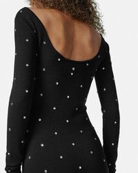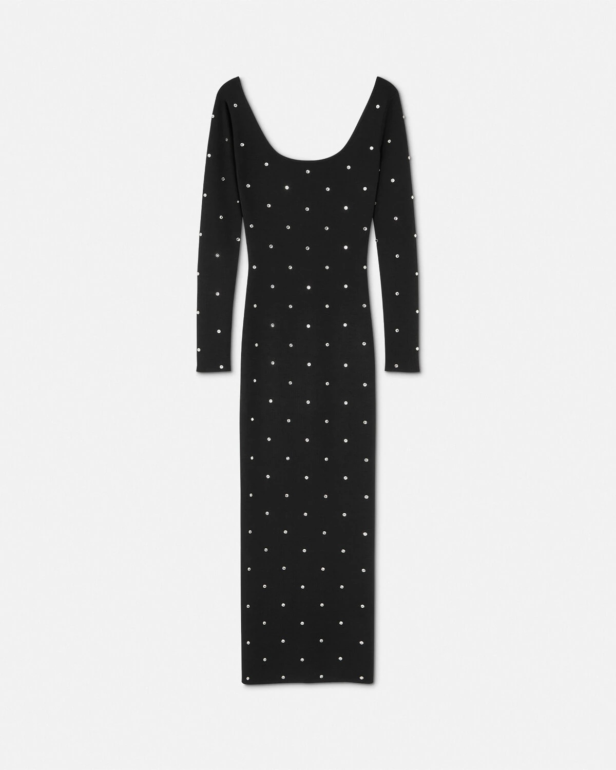 DETAILS This longsleeved woolknit dress has a scoop neckline and features allover crystal studs and a side slit A small Medusa hardware details the back - Medusa hardware - Crystal embellishments - Long sleeves - Scoop neckline - Slip on - Outer composition: 100% Pure virgin wool - Trim: 98% Pure virgin wool, 1% Nylon, 1% Polyurethane - Yarn made from responsibly sourced wool Item: 1018189-1A12704_1B000 SIZE & FIT - The model is 5'10" / 1.79 m tall and wears size 38 IT