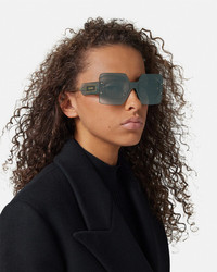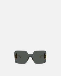 DETAILS These square-shaped shield sunglasses feature a full-lens design with front lasered rim lenses and a gold-tone enamel '90s Vintage Logo plaque at the temples. - '90s Vintage Logo plaque - Frame color: Dark gray - Temple color: Dark gray - Lens color: Dark gray - Frame: Metal - Temple: Metal Item: O2277-O10028742_RTU_TU_ONUL__ SIZE & FIT - Lens: W5.6" / W142 mm - Temple: 5.5" / 140 mm