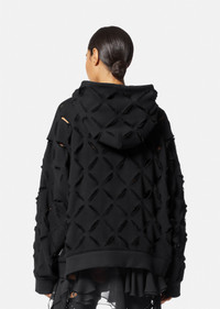 In a relaxed, oversized fit, this hooded sweatshirt is made from cotton jersey with distressed diamond slashes throughout. DETAILS & CARE - Long sleeves - Crewneck - Hood - Diamond slashes - Distressed - Kangaroo pouch - Elasticized hem and cuffs - Outer composition: 100% Cotton - Machine wash cold (delicate) - Do not bleach - Do not tumble dry - Cool iron on reverse with damp cloth on top - Do not dry clean - Wash inside out SIZE & FIT - All sizes fit Italian standards
