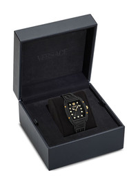 Dominus Lady 44mm Highlights - 44mm - Black - Ceramic - Tonneau face - Geometric dial - Stick hands - Signature greca-pattern print - Medusa head motif - Quartz movement - Screw-down crown - Rubber strap - Pin-buckle fastening - This item comes with a standard one-year warranty from the boutique. Imported SIZE & FIT Measurement DIAMETER 17.6 in(44.7 cm)