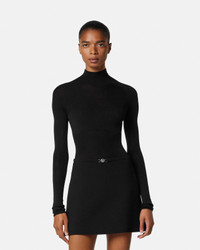 This A-line mini skirt in a double wool crepe features an accent Medusa '95 hardware at the waistband. - Medusa '95 hardware - Concealed back zip closure - Outer composition: 100% Pure virgin wool - Lining: 100% Cupro Size & Fit - The model is 5'10" / 1.79 m tall and wears size 38 IT Item: 1022397-1A12789_1B000