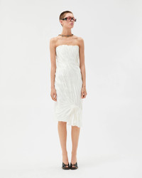 A strapless cocktail midi dress in envers-satin with a shiny finish, defined by a fitted draped silhouette with an interior corset construction. - Strapless - Concealed back zip closure - Interior corset construction - Outer composition: 74% Acetate, 26% Viscose - Lining: 100% Viscose Size & Fit - The model is 6'2" / 1.89 m tall and wears size 38 IT Item: 1024537-1A10194_1W010
