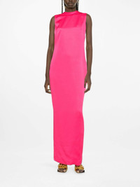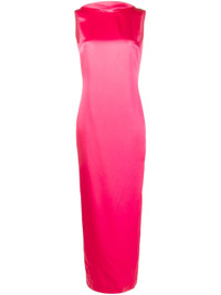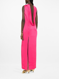 pink satin weave draped detailing round neck sleeveless concealed side zip fastening cowl back rear slit full lining floor-length Size & Fit Model Measurements: Height: 1.79 m Bust/Chest: 79.0 cm Hips: 89.0 cm Waist: 61.0 cm Model wears size 40 Fabric and Care Designer Style ID: 10100111A07319 Designer Colour: 1PM60 TROPICAL PINK Composition: Outer: Acetate 74%, Viscose 26%; Lining: Polyamide 84%, Elastane 16%, Acetate 75%, Silk 25% Washing instructions: Dry Clean Only Made in Italy