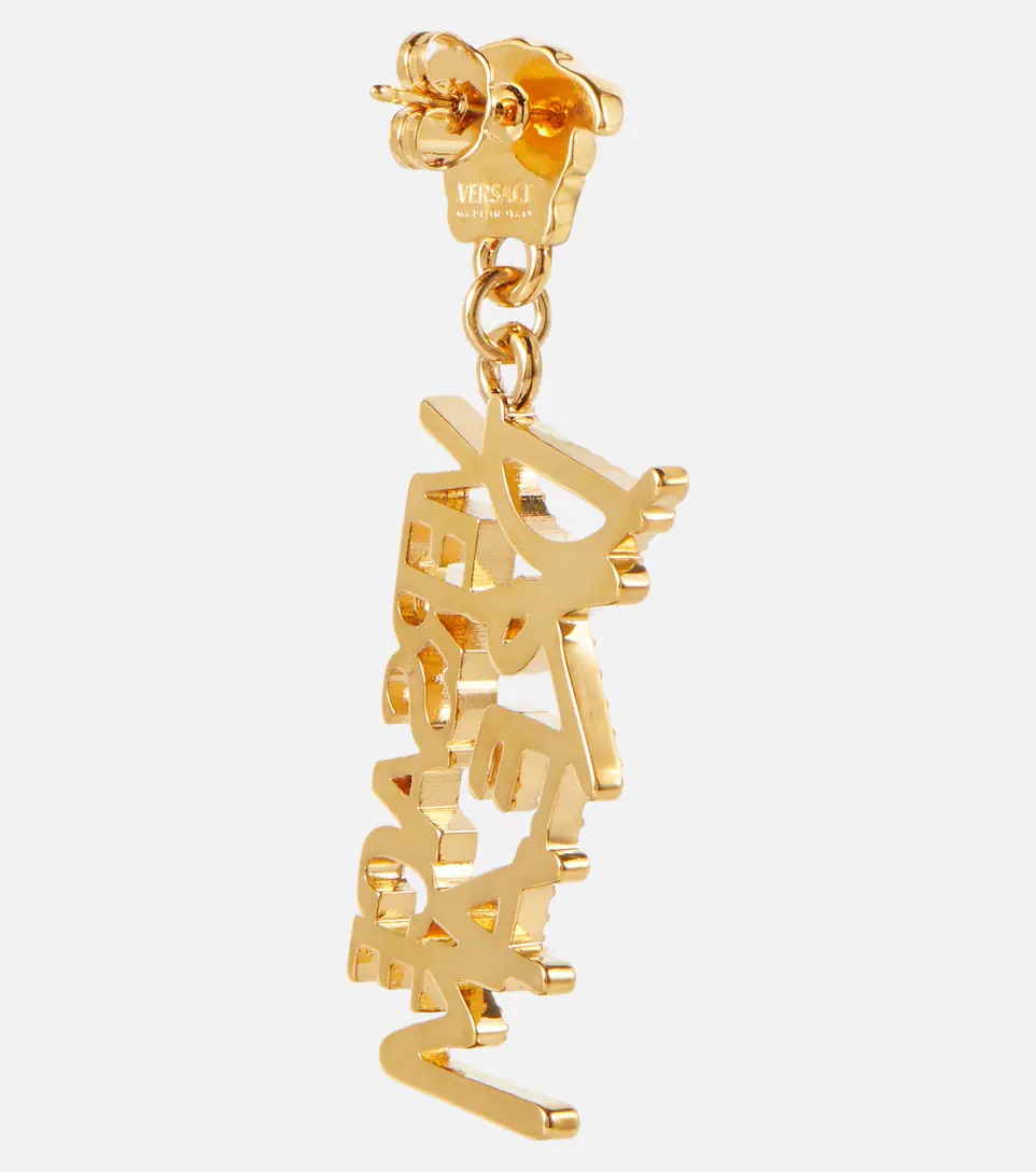 Show off your love for Versace with these rainbow crystal-embellished earrings. The gold-toned pair is shaped with the Versace Dream logo and a Medusa head motif. - material: brass - butterfly-back fastening - Made in Italy - for pierced ears size & fit - Length 5,5cm-2" - Max. width 2cm-1"