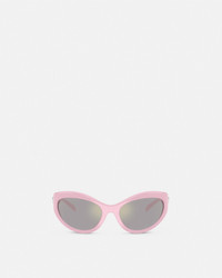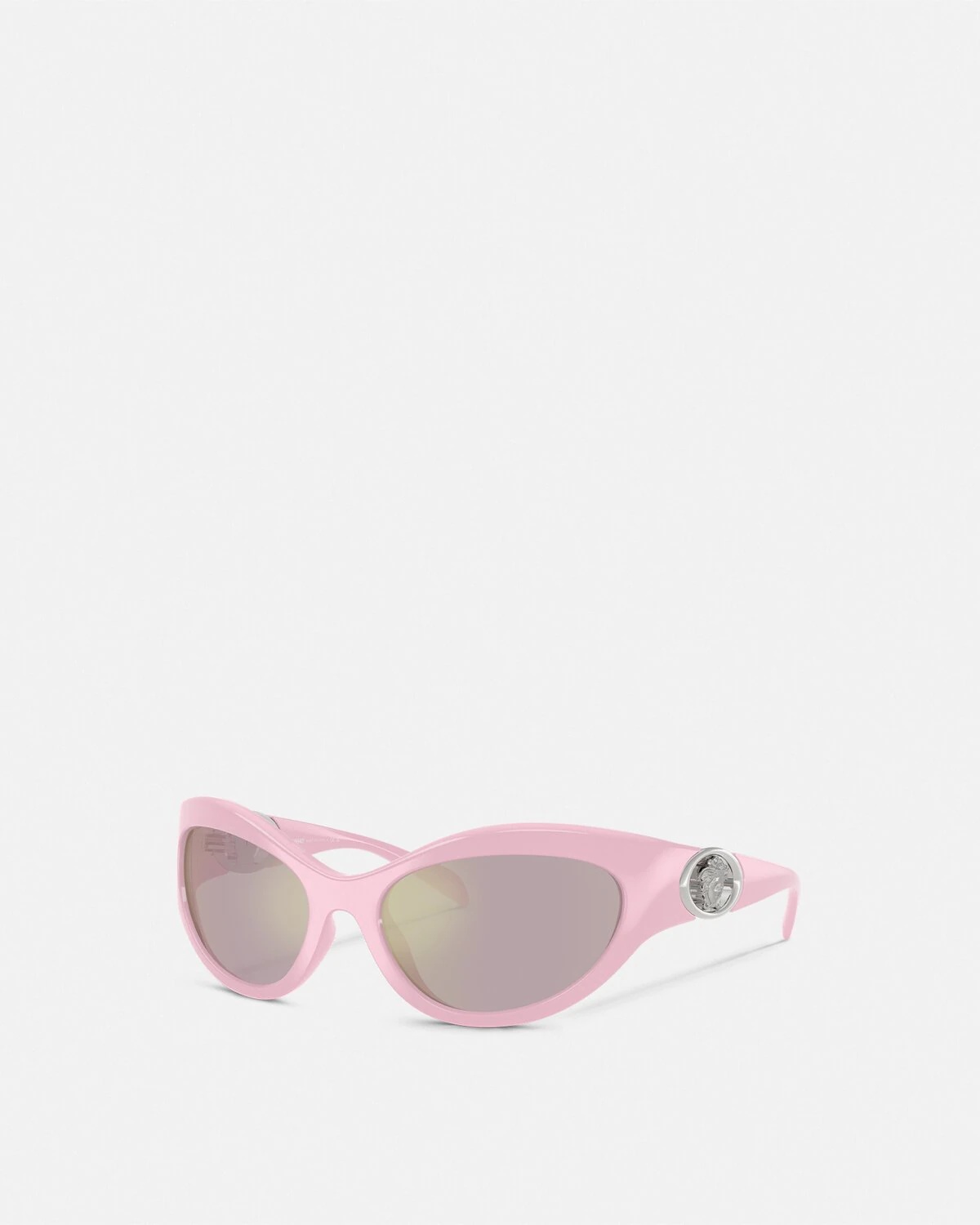 DETAILS These futuristic injected cateye sunglasses are detailed with side Medusa hardware - Medusa hardware - Frame color: Metallic pink - Temple color: Metallic pink - Lens color: Pink rose-gold mirror - Frame: Injected - Temple: Metal Item: O4485-O5521Z59_ONUL SIZE & FIT - Lens: W2.3" x H1.6" / W59 x H40 mm - Bridge: 0.7" / 19 mm - Temple: 4.9" / 125 mm