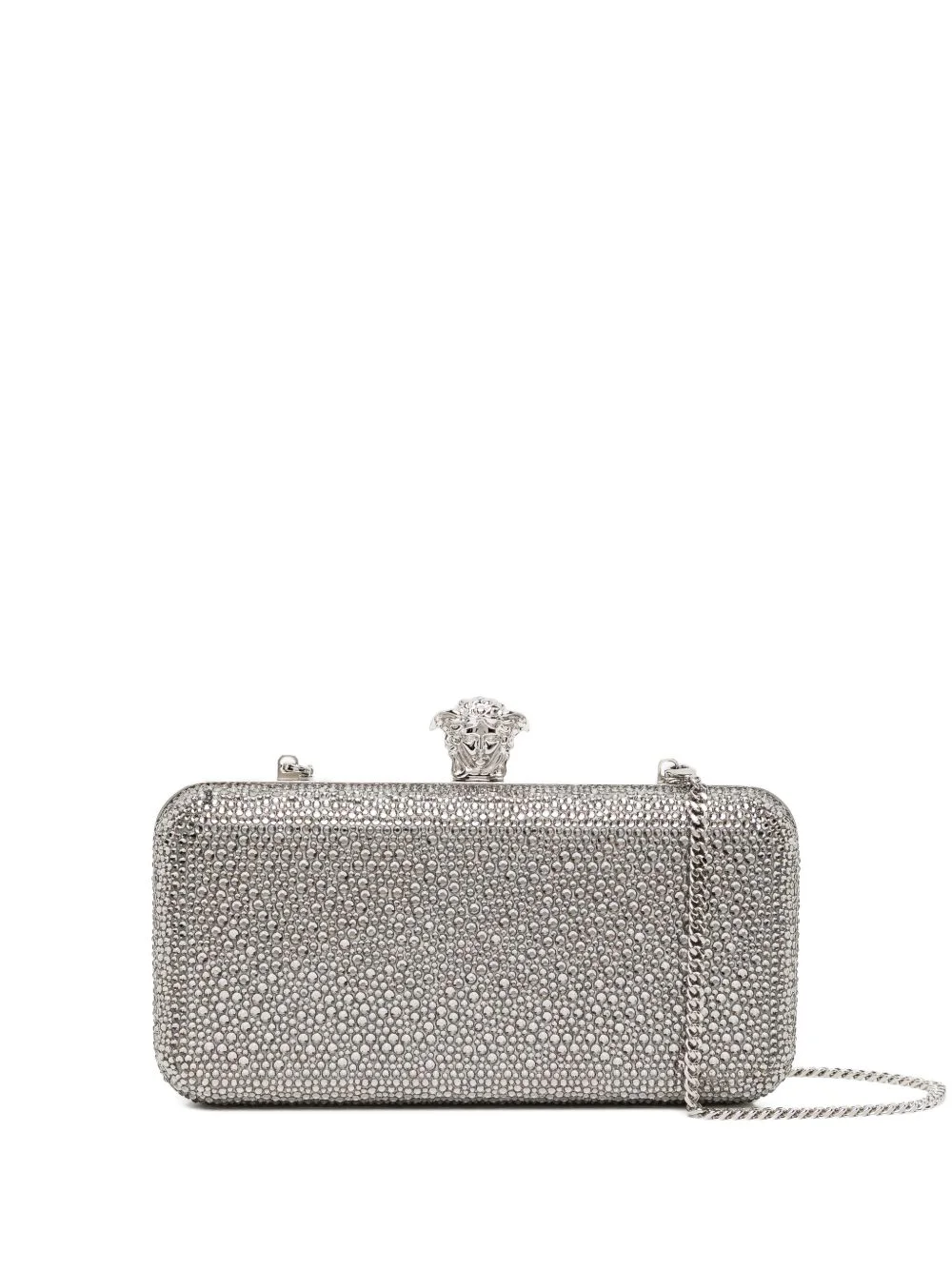 embellished clutch Highlights - Silver - Crystal embellishments - Lock closure - Detachable chain strap Made in Italy Composition Outer: Viscose 72%, Silk 28% SIZE & FIT Measurement DEPTH 2.36 in(6 cm) WIDTH 8.26 in(21 cm) HEIGHT 4.33 in(11 cm) STRAP 39.37 in(100 cm)