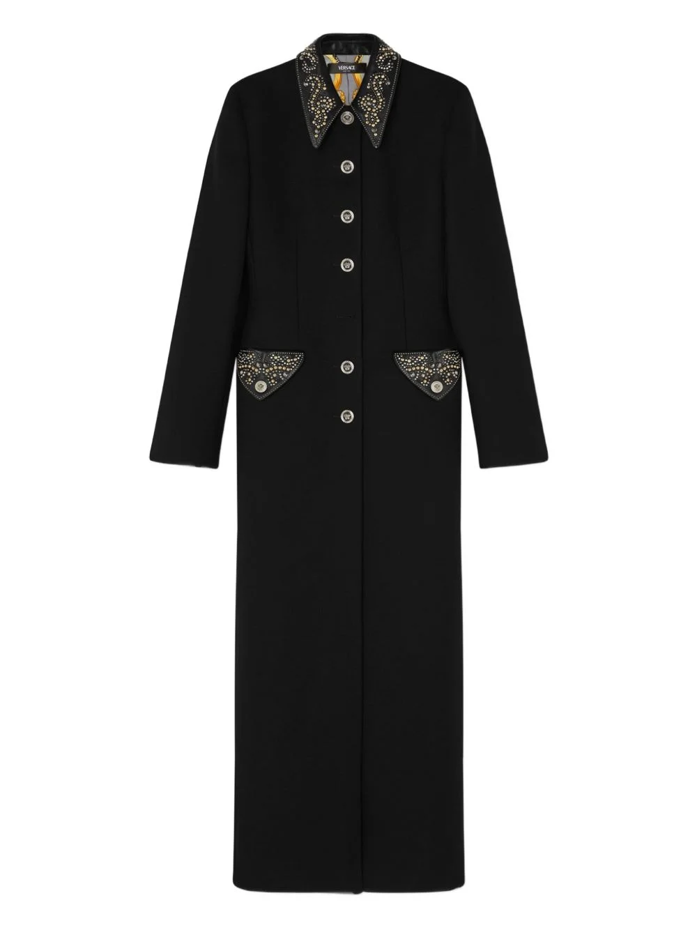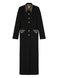embellished-collar coat Highlights - Black - Embellished collar - Button fastening - Flap pockets Made in Italy Composition Wool 86%, Polyamide 14% Washing instructions Read Manufacturer Guidelines