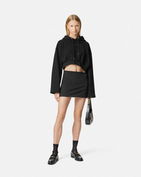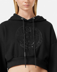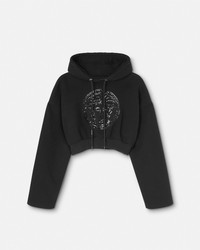 DETAILS A cropped cotton-jersey hooded sweatshirt featuring a sequin-embroidered Medusa motif and wide sleeves. - Medusa motif - Sequin embellishments - Long sleeves - Drawstring hood - Elastic waistband - Outer composition: 100% Cotton - Lining: 100% Cotton - Trim: 93% Cotton, 7% Elastane - Fabric made using GOTS-certified organic cotton yarn Item: 1014293-1A10160_1B000 SIZE & FIT - The model is 5'8" tall and wears size 38 IT