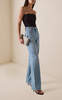 Embellished Rigid High-Rise Straight-Leg Jeans blue