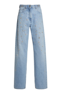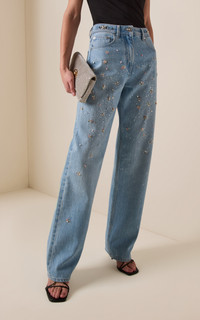 Designs are crafted around the key signatures of the House, from the iconic codes of the Barocco and Medusa ’95 to the use of silhouette, material, and print—immediate signifiers of Versace. Crafted from rigid cotton denim, these straight-leg jeans feature hand-done embroidered and stone embellishments. PRODUCT DETAILS - Pre-Fall '25 - Button and concealed zip fastening - Composition: 100% Cotton - Dry clean only - Made in Italy SIZE & FIT - Designed for a relaxed fit