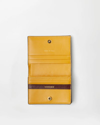 A compact bifold wallet in calf leather featuring an accent 3D Medusa hardware at the front. The functional accessory hosts multiple card slots, a zippered compartment, and a bill compartment. - Medusa hardware - Versace logo embossing - 5 card slots - 1 note compartments - 1 zipped pocket - Outer composition: 100% Lambskin - Lining: 100% Lambskin - Trim: 100% Calf leather Size & Fit - L4.3 x W1 x H3.1" / L11 x W2.5 x H8 cm Item: 1024190-1A17449_DTU_UNICA_1NM2J__