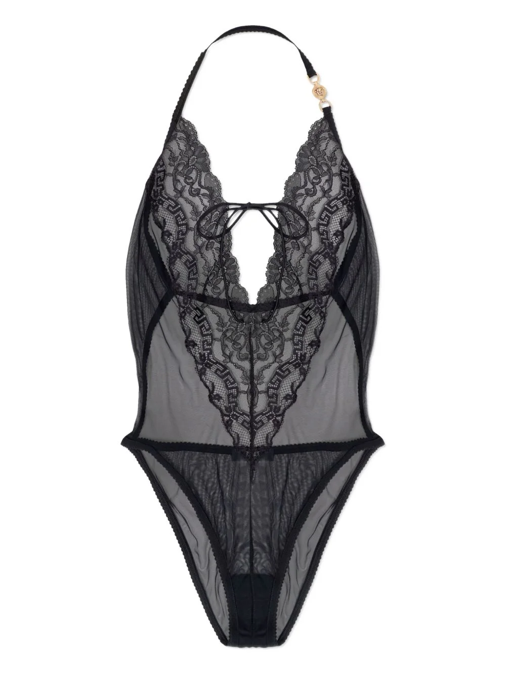 embroidered lace-trim bodysuit Highlights - Black - Lace detail - Tie detail - Halterneck - Gold-tone hardware - Just a reminder that this piece must be tried on over your own garments. Made in Italy Composition Polyamide 82%, Elastane 18% Washing instructions Read Manufacturer Guidelines