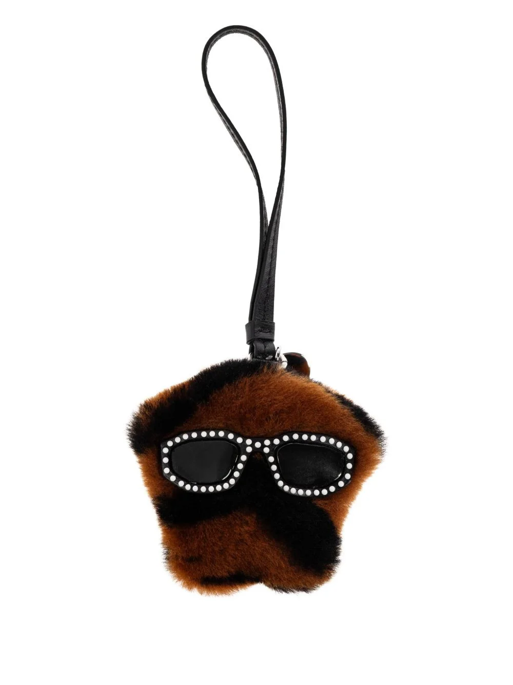 faux-fur bag charm Highlights - Brown - Lambskin - Rhinestone-embellished sunglasses - Leather strap - Keyring attachment Made in Italy Composition Lamb Skin 100%