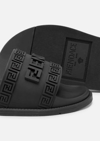 Part of the Fendace capsule collection, these sliders are embellished with the debossed Fendace Logo. DETAILS & CARE - Fendace logo - Embossed Fendace logo on the sole - Outer fabric: 100% Calf leather - Sole: 100% Polyurethane SIZE & FIT - Fits true to size, take your normal size - All sizes fit Italian standards