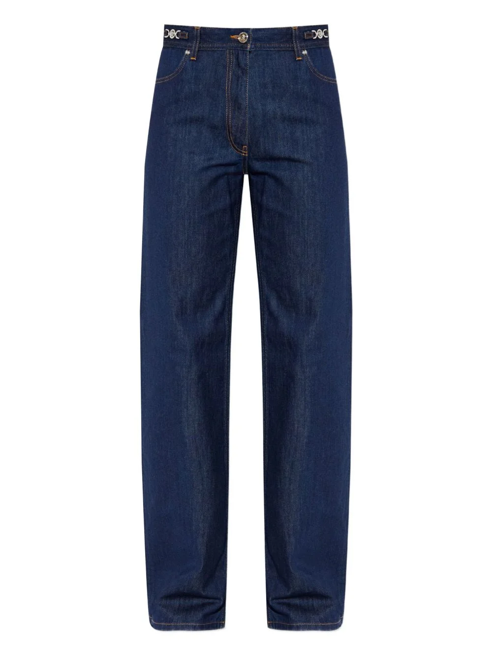 five-pockets jeans Highlights - Blue - Embellished waistband - Five pockets - Contrast stitching - Logo patch - Belt loops Made in Italy Composition Cotton 100% Washing instructions Read Manufacturer Guidelines