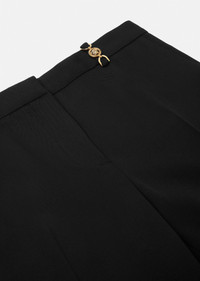 Woven in a stretch wool blend, these tailored trousers have a slightly flared hem, belt loops and front press pleats. DETAILS & CARE - Belt loops - Flared leg - Side pockets - Concealed hook and zip closure - Outer composition: 98% Wool 2% Elastane SIZE & FIT - All sizes fit Italian standards