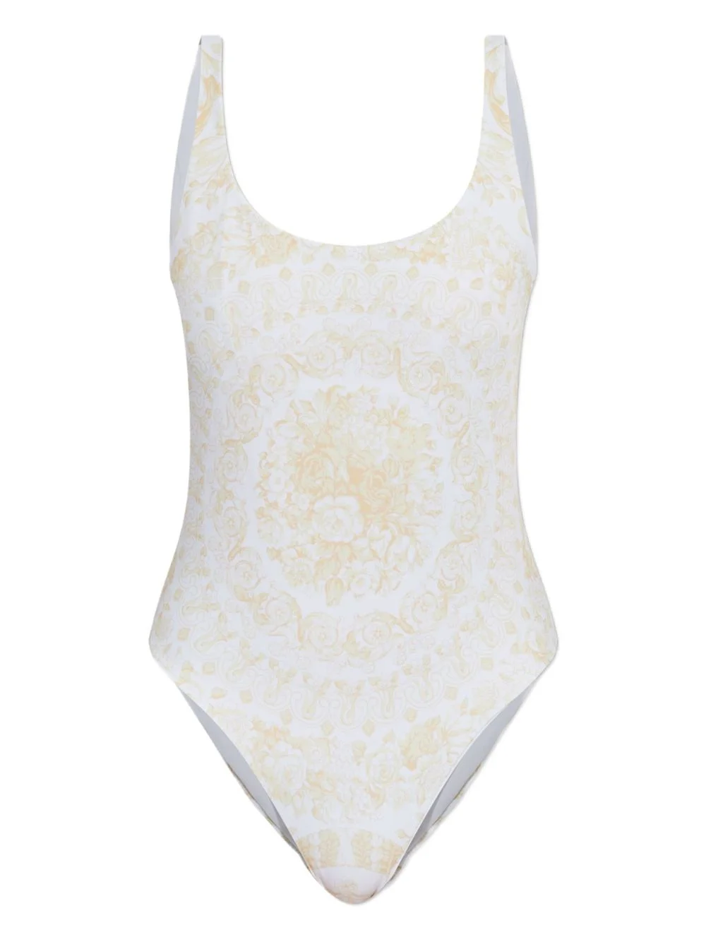 floral-print swimsuit Highlights - White and beige - Floral print - Scoop neck - Sleeveless - Scoop back - Be mindful to try on swimwear over your own garments. Made in Italy Composition Polyamide 80%, Elastane 20% Washing instructions Read Manufacturer Guidelines
